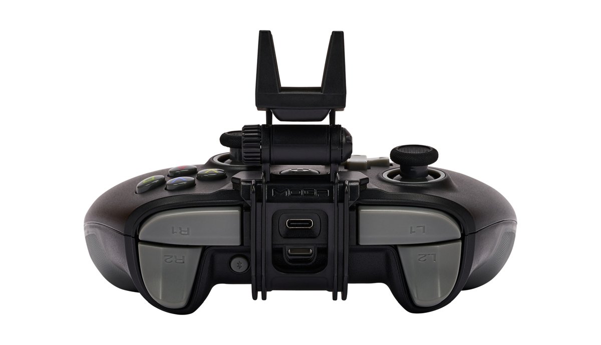 Odłączany klips MOGA Gaming Clip z mechanizmem podwójnej regulacji, który pasuje do każdego aktualnego modelu iPhone'a
