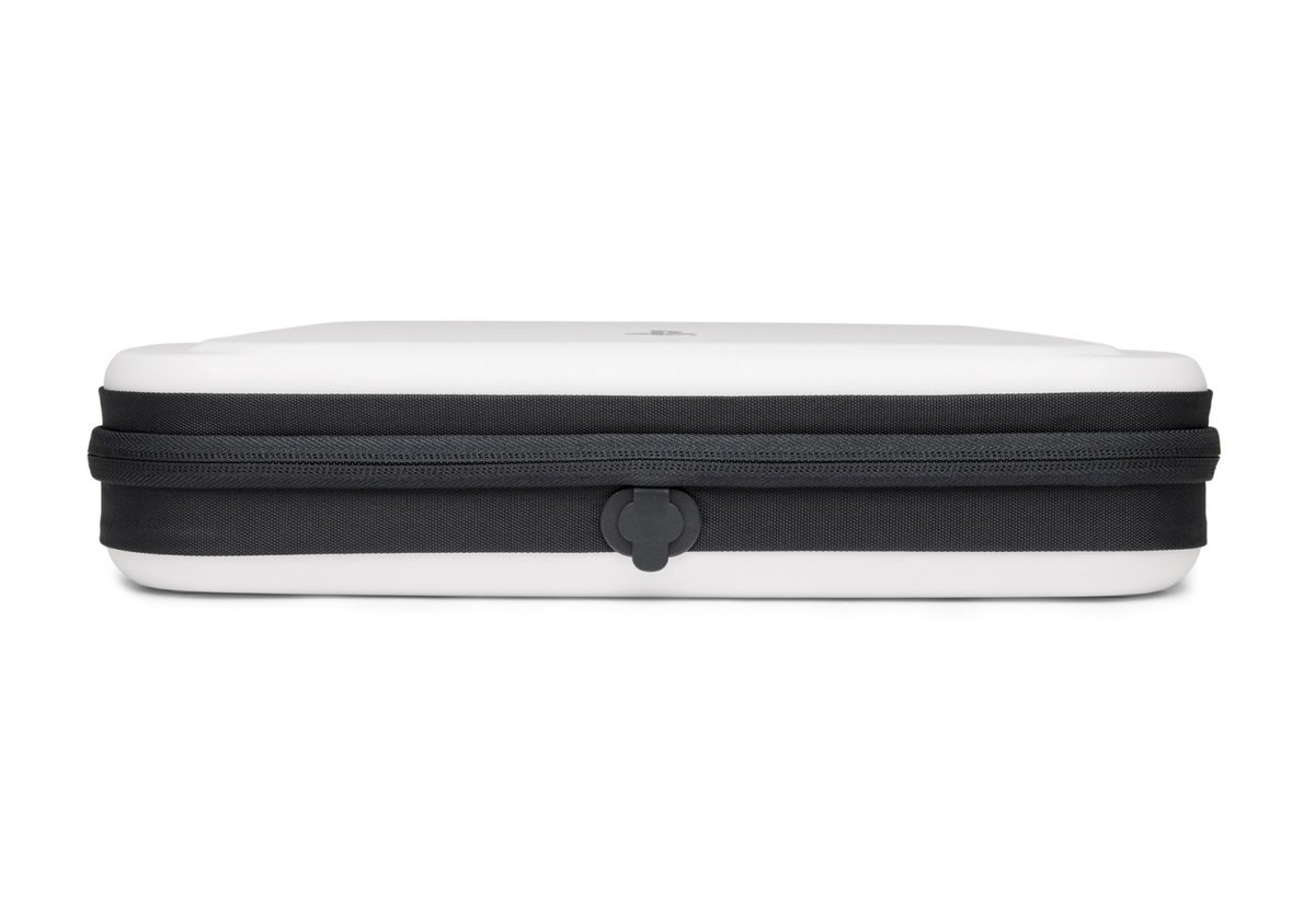 Futerał łączy w sobie wytrzymałą powłokę zewnętrzną i formowane wnętrze, zapewniając bezpieczną ochronę podczas podróży i codziennych czynności. Otwór na kabel ładujący umożliwia ładowanie PlayStation Portal, gdy sprzęt znajduje się wewnątrz.