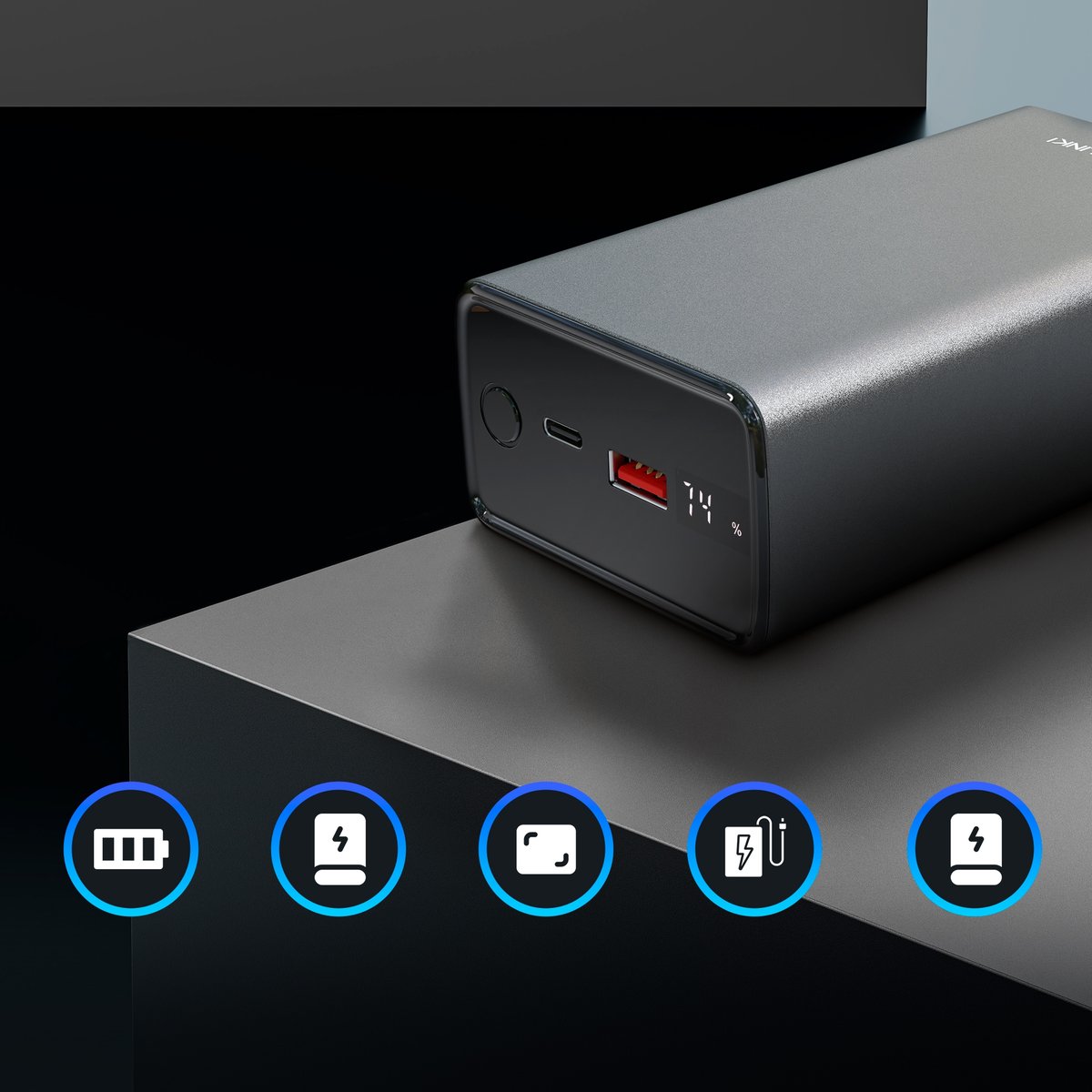 - Wyjście: USB: 5V=4.5A, 9V=2A, 12V=1.5ATYPE-C: 5V=3A, 9V=3A, 12V=3A, 15V3A, 20V=3.25A