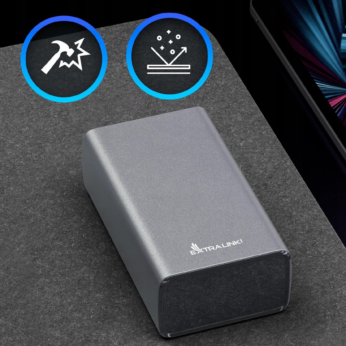 Akumulator litowo-polimerowy w power banku Extralink o wysokiej gęstości to bezpieczeństwo i wydajność na wysokim poziomie. Extralink Power Bank gwarantuje najlepszą w swojej klasie ochronę układów scalonych przy jednoczesnym zwiększeniu wydajności ładowania.