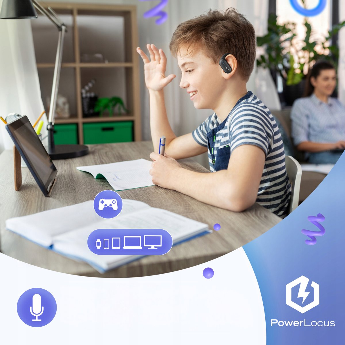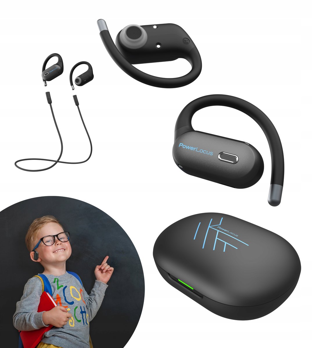 PowerLocus Jumpy to słuchawki Bluetooth typu Open-Ear, które nie wchodzą do kanału usznego i ograniczają maksymalną głośność do 85dB, zgodnie z normami WHO – bez ryzyka dla słuchu!