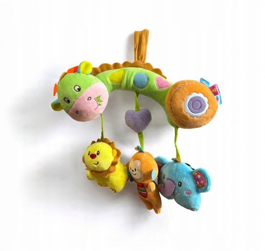 Zabawka wspiera rozwój sensoryczny i motoryczny dziecka. Idealna do zawieszenia na wózku, foteliku samochodowym lub łóżeczku. Wykonana z bezpiecznych, miękkich materiałów.