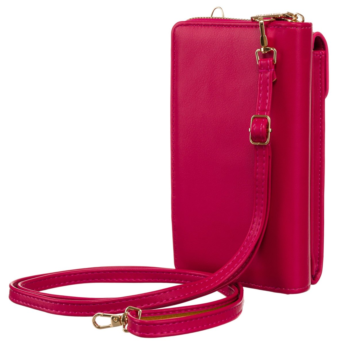Na froncie torebko-portfela znajduje się praktyczna kieszeń na telefon o wymiarach 16,5 x 8 x 1,5 cm. Kieszeń posiada klapkę z zapięciem typu zatrzask.