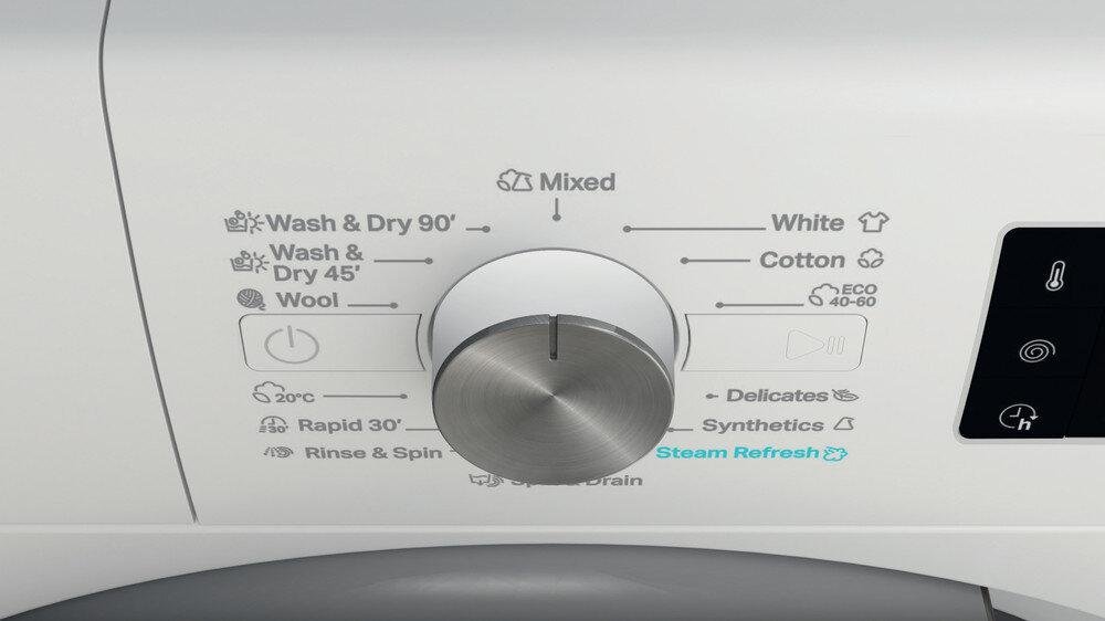 Whirlpool FWDG FFWDB 964369 SV EE to połączona pralka i suszarka w klasie energetycznej D o pojemności 9 kg prania i 6 kg suszenia . Korzyści: FreshCare+ - delikatna siła pary i obrót bębna odświeża pranie i zapobiega tworzeniu się bakterii w pralce Unikalna technologia suszenia 6-ty Zmysł firmy Whirlpool sprawia, że pranie jest delikatnie suszone łagodnym strumieniem powietrza, co zapewnia odzieży idealną ochronę. Perfekcyjna pielęgnacja wełny. Program wełna gwarantuje idealną pielęgnację Twoich wełnianych rzeczy. SteamCare skutecznie odświeża, zmiękcza i usuwa zagniecenia z Twoich ubrań przy użyciu naturalnej siły czyszczenia pary. Opcja Dry Only (tylko suszenie) umożliwia pominięcie cyklu prania, jeśli masz mokre lub ręcznie prane tkaniny. Dzięki funkcji Wash&Dry możesz cieszyć się czystymi, suchymi rzeczami, korzystając z jednego urządzenia.