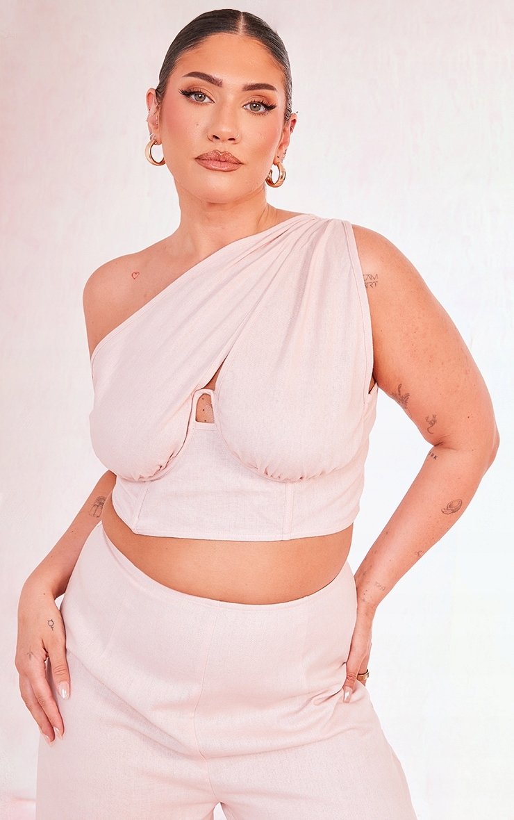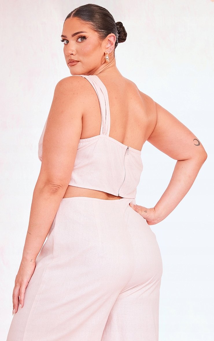 PRETTYLITTLETHING PLUS SIZE TOP Z LNEM Opis ProduktuMarka PrettyLittleThingKolor RóżowySkład 49% wiskoza 38% poliester 13% lenMetka papierowa TakMetka wewnętrzna TakRozmiar ...