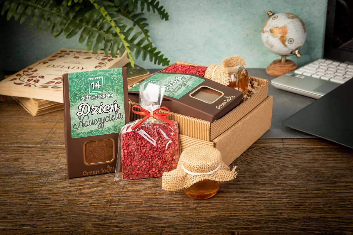 | Nazwa: | Prezent na dzień nauczyciela pudełko z kawą, miód i czekolada z nadrukiem |