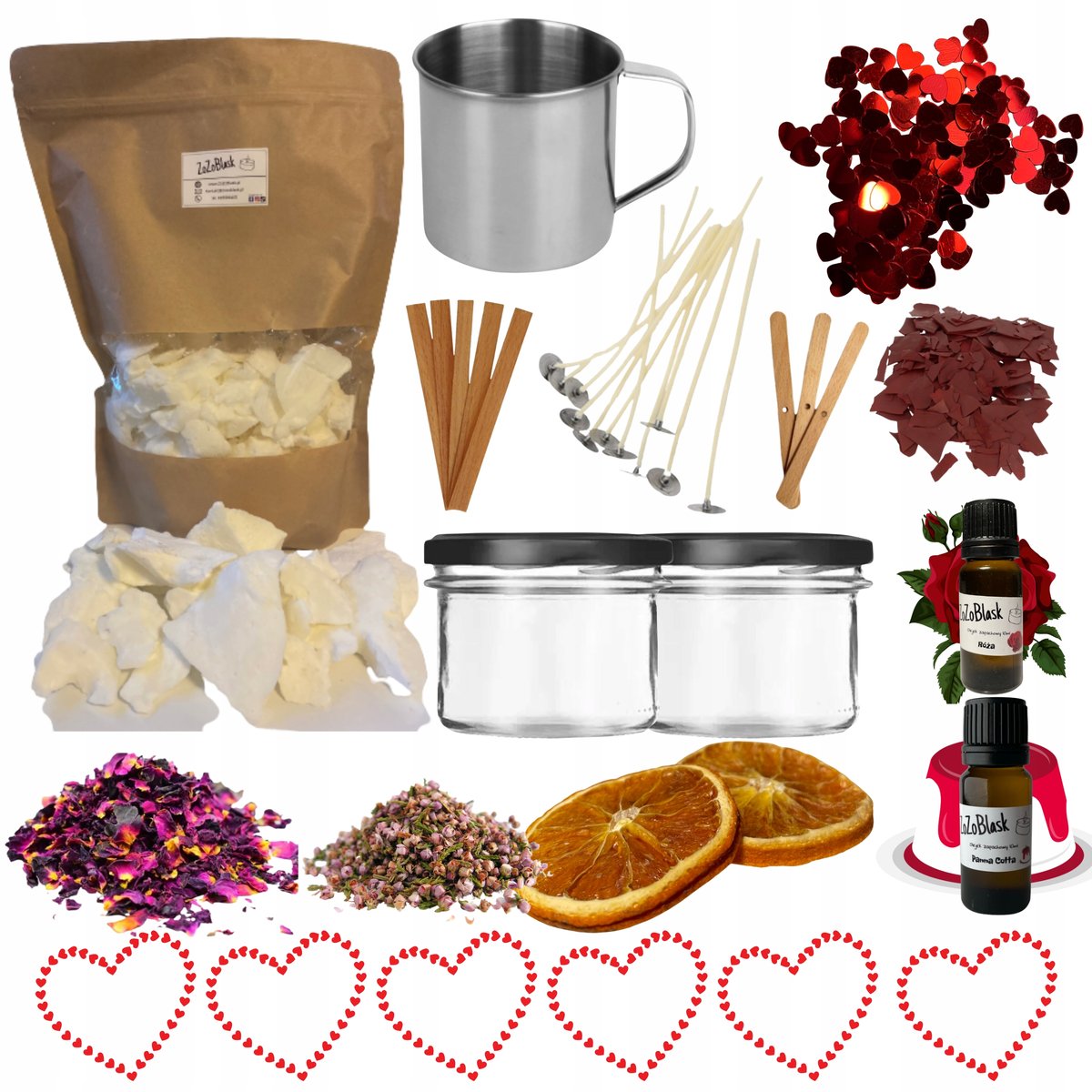 Walentynkowy zestaw DO ROBIENIA ŚWIEC SOJOWYCH DIY od ZoZoBlaskZestaw walentynkowy świec sojowych to idealne rozwiązanie na zdrowe, naturalne i pachnące wnętrze w towarzystwie ukochanej osoby. Rozpal