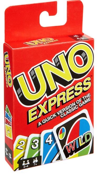Talia UNO Express zawiera karty w czterech kolorach (niebieskim, żółtym, czerwonym i zielonym) z liczbami od zera do dziewięciu. Dostępne są również karty bonusowe: ?Weź jedną?, ?Zmień kierunek?, ?Pomiń ruch?, ?Kolor zamówienia? i ?Weź dwie?.