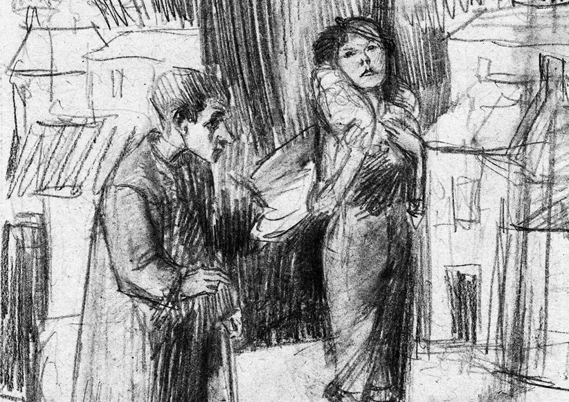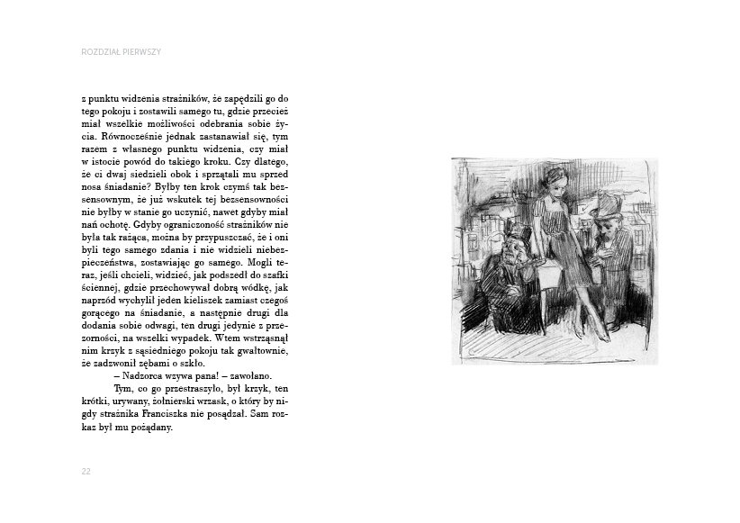 Proces w tłumaczeniu Schulza ilustrowany jego grafikami.