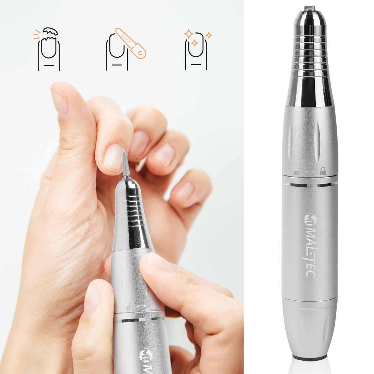 Dzięki niej w szybki sposób skrócisz paznokcie, czy pozbędziesz się brzydkich skórek. Rączka nie wibruje, dzięki czemu zapobiega zmęczeniu po dłuższym użytkowaniu, w dużym stopniu wpływa to również na jakość wykonywanej pracy.