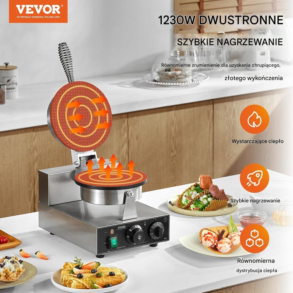 ✅ Lodziarnie i cukiernie – idealne do tworzenia świeżych, chrupiących rożków do lodów.