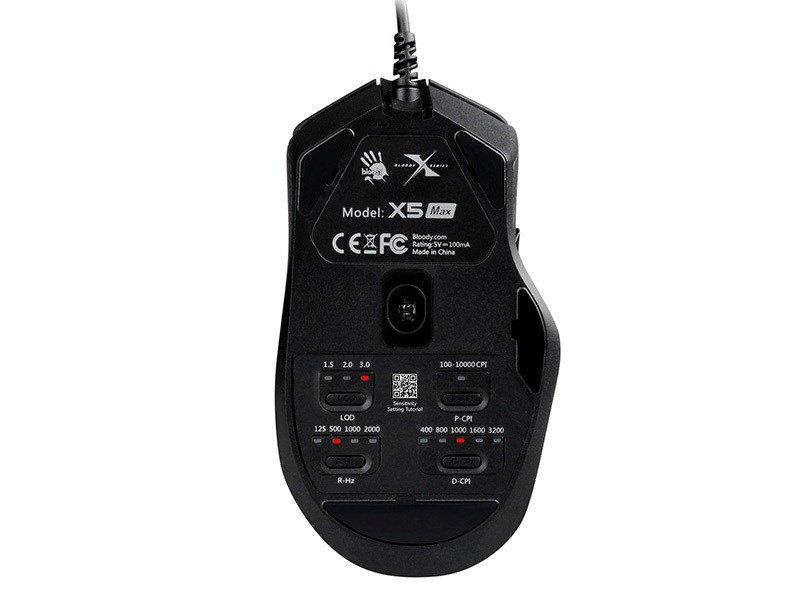 Klawisze do regulacji trybów pracy i sterowania czujnikiem dla A4Tech Bloody X5 Max zostały przeniesione do podstawy bez konieczności instalacji dodatkowego oprogramowania.