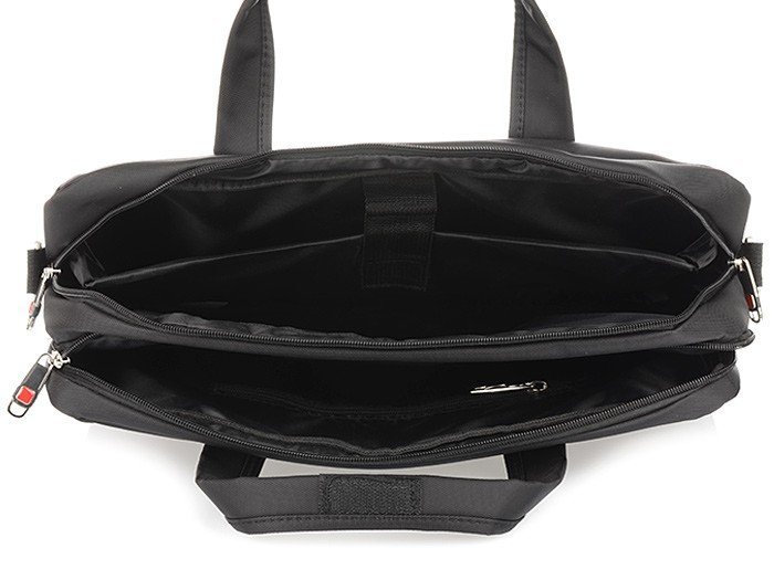 - Torba ma dwie niezależne, zasuwane komory. W jednej z nich znajduje się specjalna, zmiękczana przegroda na laptopa 15,6" zapinana dodatkowo na pas na rzep. Torba od wewnątrz obita jest specjalnym zmiękczającym materiałem, dzięki czemu laptop w niej się mieszczący jest porządnie chroniony. W środku obok laptopa jest dodatkowa przestrzeń na dokumenty.