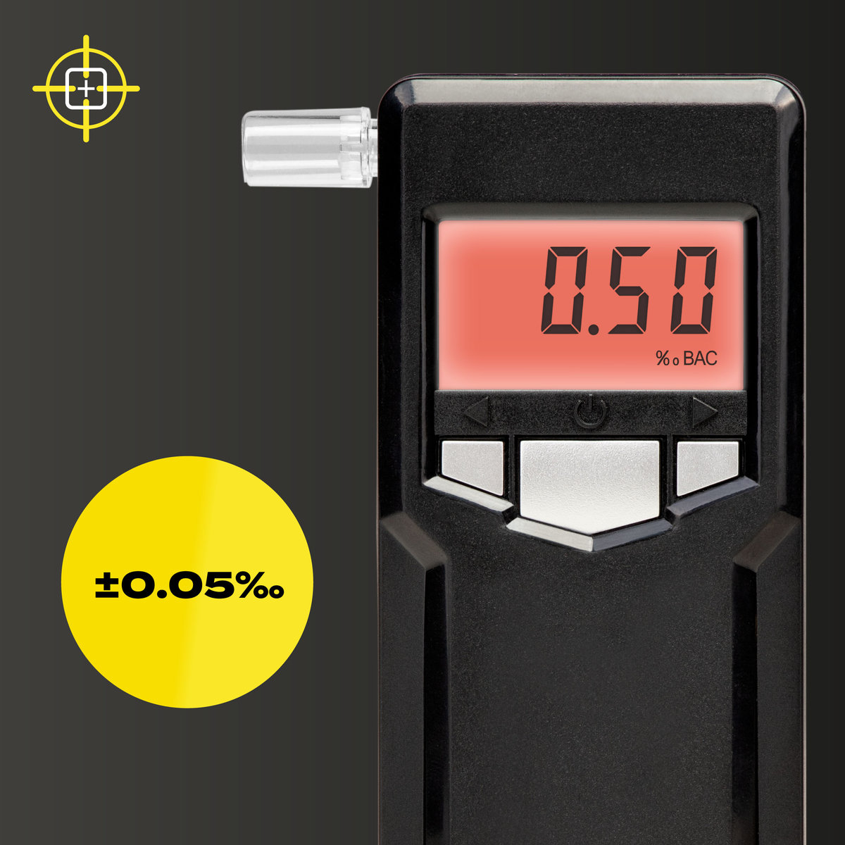 Oferowany alkomat wyświetla wynik pomiaru na ekranie oraz emituje sygnał dźwiękowy po zakończeniu badania. Co więcej, jego ekran zmienia kolor w zależności od zawartości alkoholu w wydychanym powietrzu. Dzięki temu jest naprawdę intuicyjny w obsłudze!