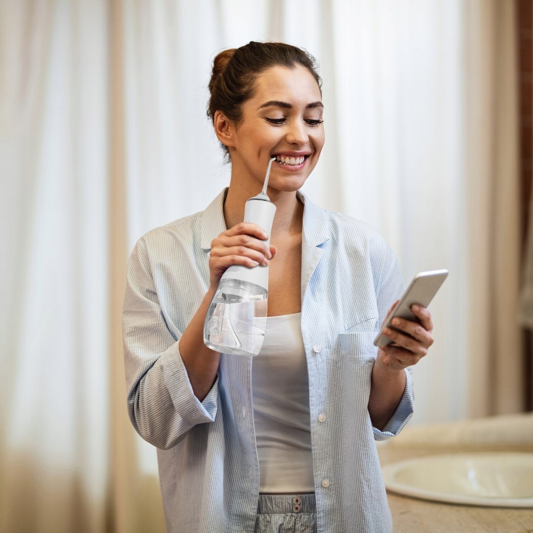 Dzięki bezprzewodowemu irygatorowi skutecznie oczyścisz zęby, przestrzenie międzyzębowe oraz dziąsła. Idealny do codziennego stosowania oraz dla osób noszących aparaty ortodontyczne, implanty czy korony.