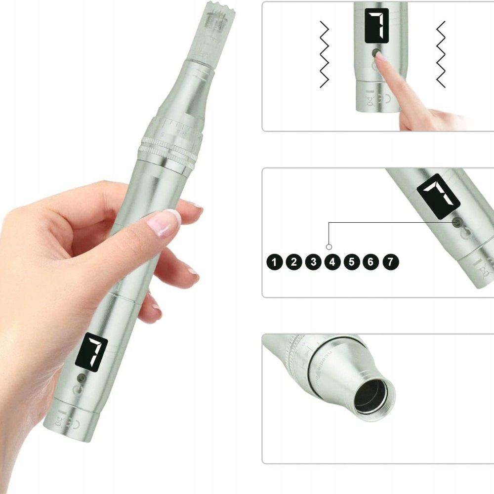 Właśnie zrecenzowałem Profesjonalny Derma Pen 7 trybów LCD 12 wkładów srebrny do skóry