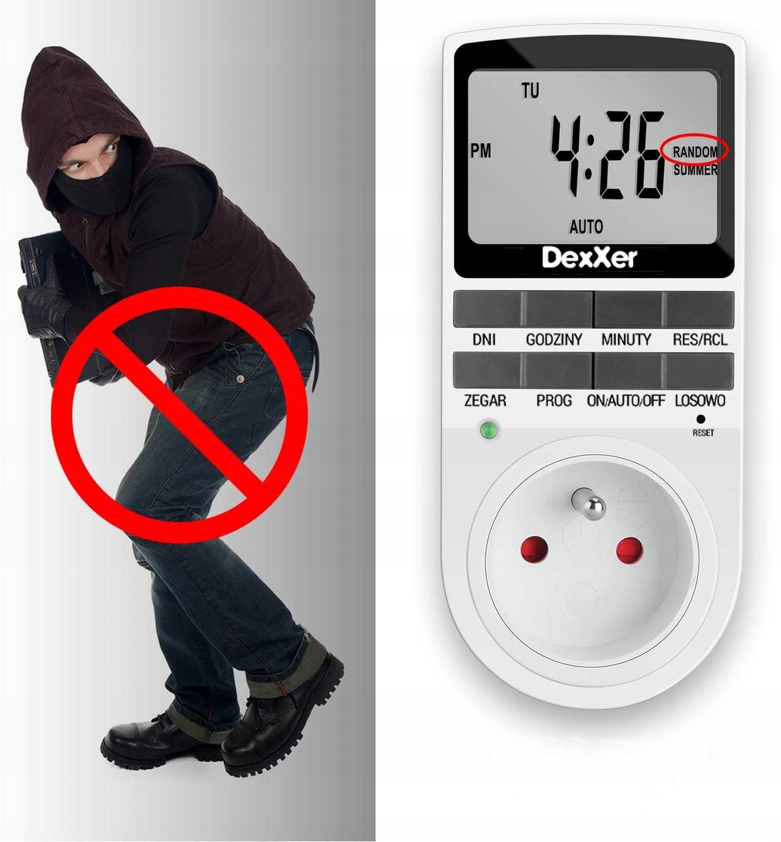 Programator sprawdzi się zarówno w gospodarstwie domowym, warsztacie, jak i przy doświetlaniu terrariów i akwariów. Nie chcesz aby potencjalni złodzieje wiedzieli o Twojej nieobecności? Ustaw programator tak, aby zapalał i gasił światło w czasie, kiedy zazwyczaj przebywasz w domu! Dzięki systemowi potrzymania pamięci, nawet przerwa w dostawie energii elektrycznej nie zresetuje ustawień urządzenia.