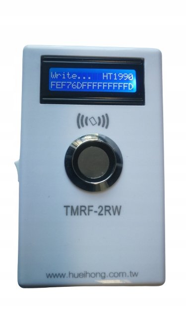 Urządzenie automatycznie wyświetla odczytany numer klucza Dallas / iButton oraz przechodzi w tryb zapisu czystego nośnika (klucz Dallas / iButton RW 1990 lub brelok / karta / naklejka RFID EM4305)