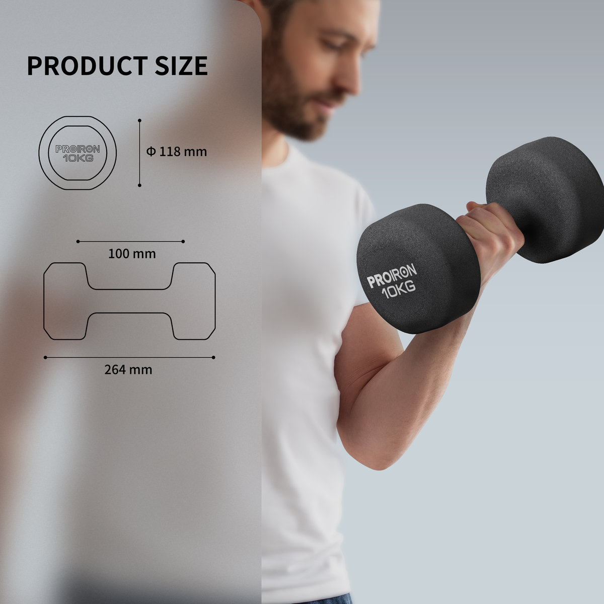 Właśnie zrecenzowałem PROIRON PRKNED10K Zestaw hantli, 2 szt., 10 kg, czarny, neopren