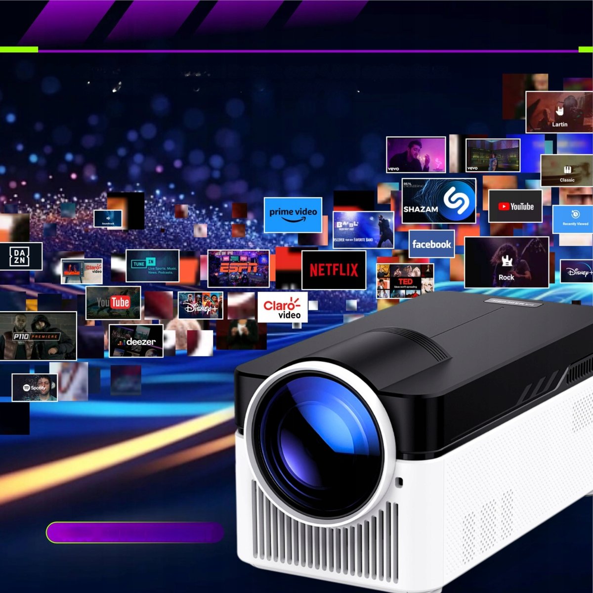 Właśnie zrecenzowałem Projektor 4K Hy450 1080P Netflix Youtube Led Auto Fokus Wifi6 Bluetooth 5.4