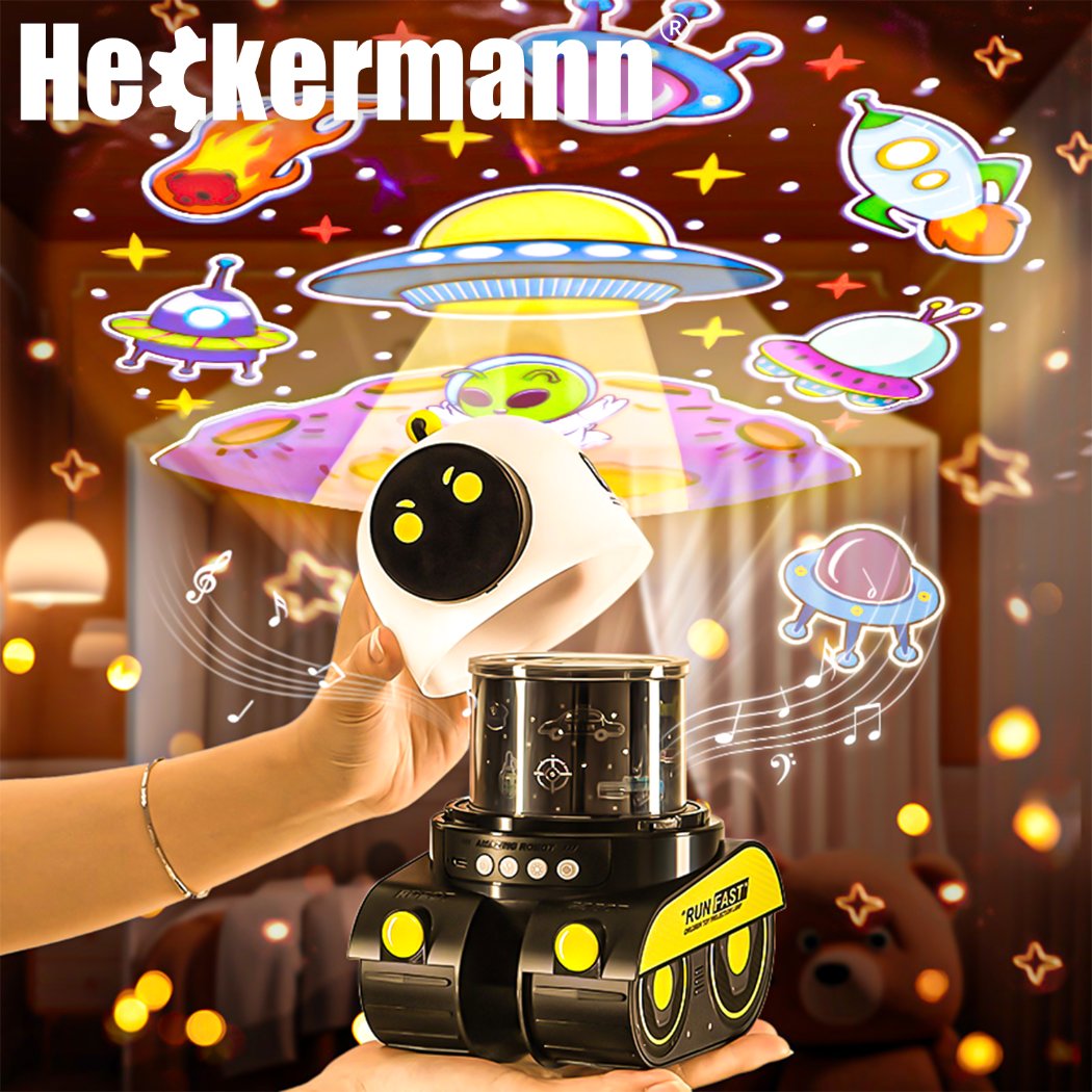 Projektor świetlny LED Heckermann WH-E03 Robot w kształcie robota to idealne rozwiązanie dla każdego, kto pragnie zamienić dziecięcy pokój w magiczną krainę snów i gwiazd.