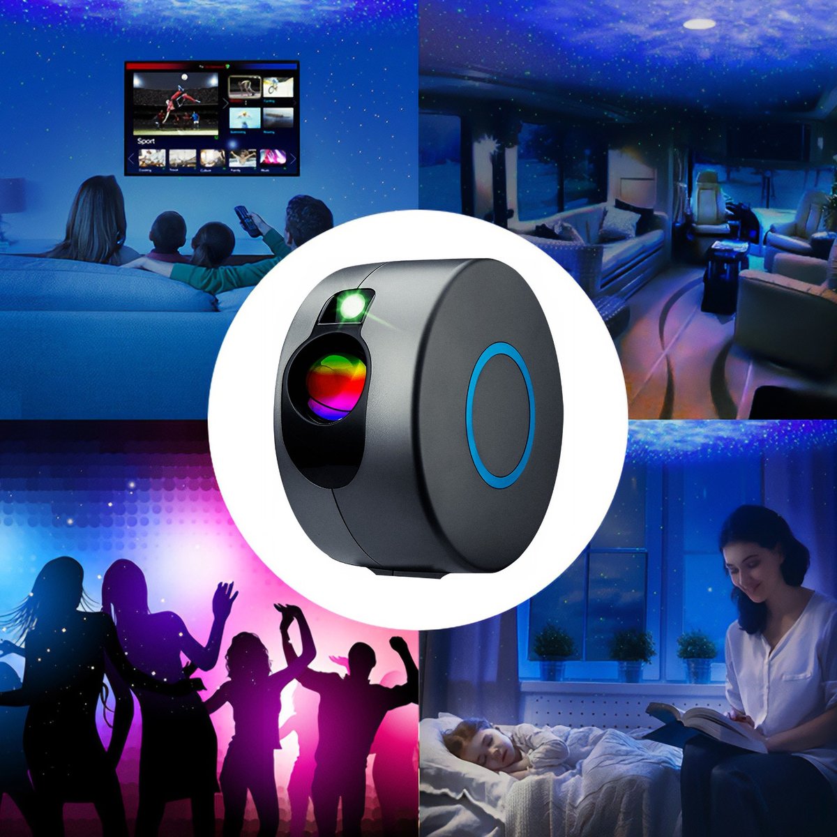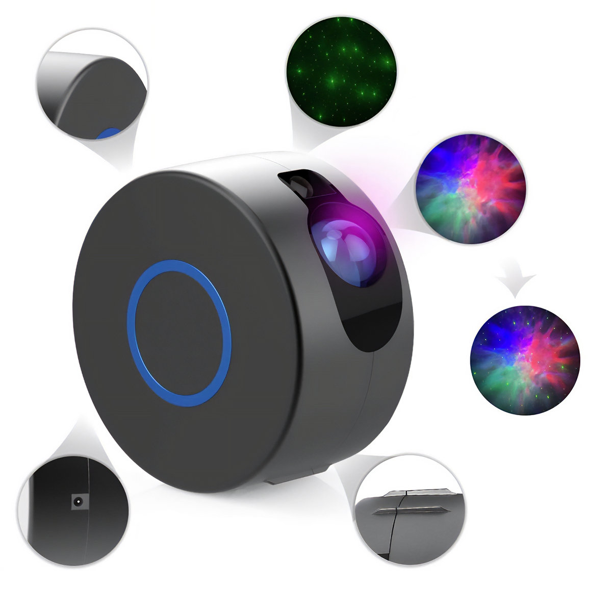 Dzięki silnej wbudowanej lampie oraz wysokiej jakości laserom, projekcje są najwyższej jakości i zachwycą każdego gościa. Obraz doskonale rozchodzi się nawet po większych pomieszczeniach zapełniając ściany i sufit niezwykłymi iluminacjami. Również samo urządzenie wygląda bardzo nowocześnie, przez co pasować będzie do każdego pomieszczenia.