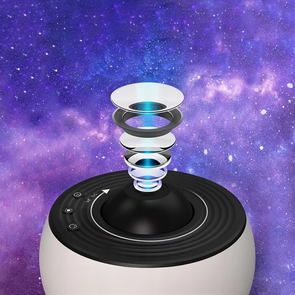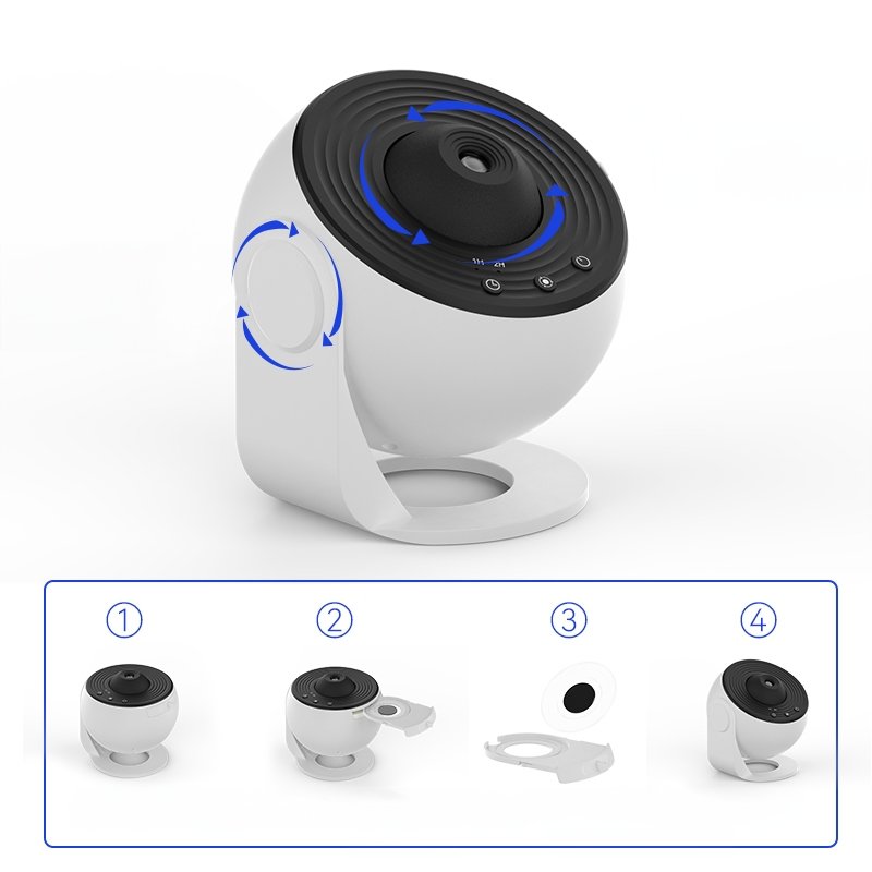 Projektor wyposażony został w obrotową głowicę, która powoli kręci się wokół własnej osi imitując gwieździste niebo, kosmos lub planety w realistyczny sposób na Twoim suficie!