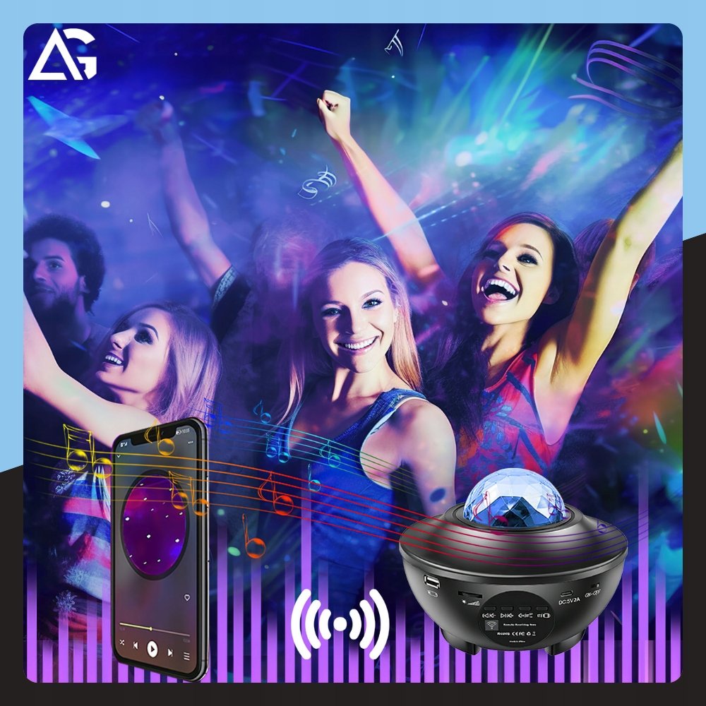 Oprócz grania muzyki z dwóch głośników projektor ma funkcję zmiany wyświetlanych efektów w rytm muzyki, co sprawi, że możesz imprezować, w jeszcze lepszym stylu!