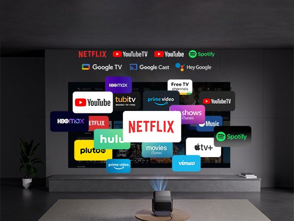 Dzięki wbudowanemu systemowi Google TV, JMGO N1S Ultimate oferuje dostęp do tysięcy aplikacji, w tym popularnych serwisów jak Netflix. Możesz łatwo przeglądać ulubione treści i odkrywać nowe dzięki spersonalizowanym rekomendacjom, które dopasowują się do Twoich preferencji.