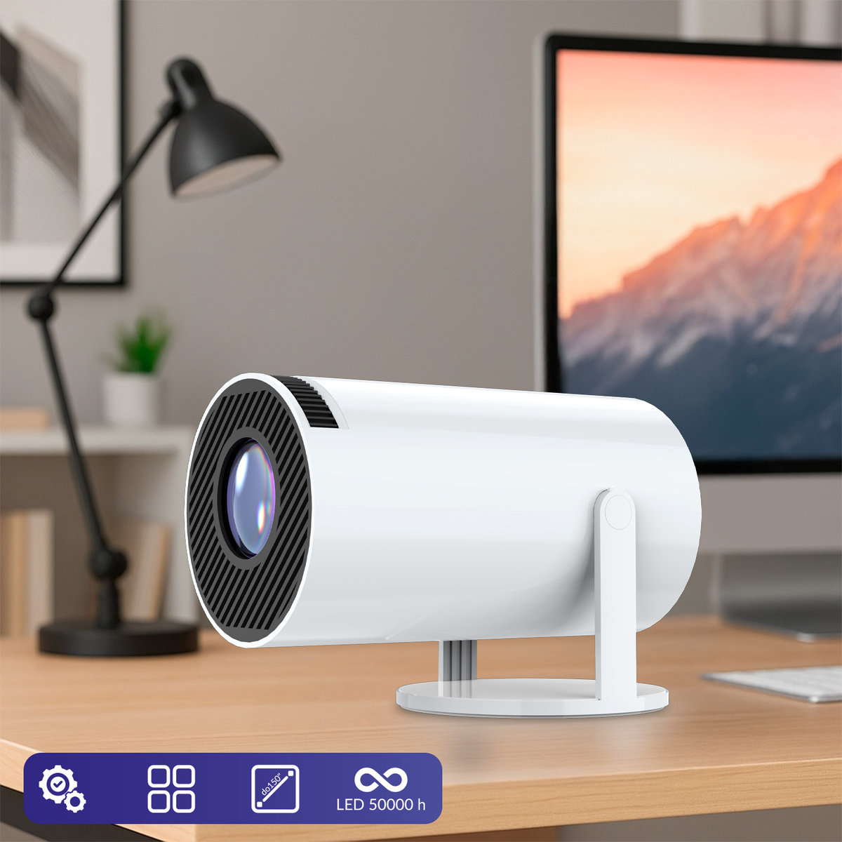 Projektor został zaprojektowany z myślą o nowoczesnych wnętrzach. Minimalistyczna obudowa pasuje zarówno do salonu, jak i biura, a niewielkie wymiary sprawiają, że urządzenie łatwo przeniesiesz w dowolne miejsce.