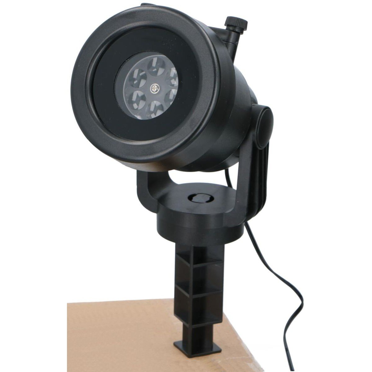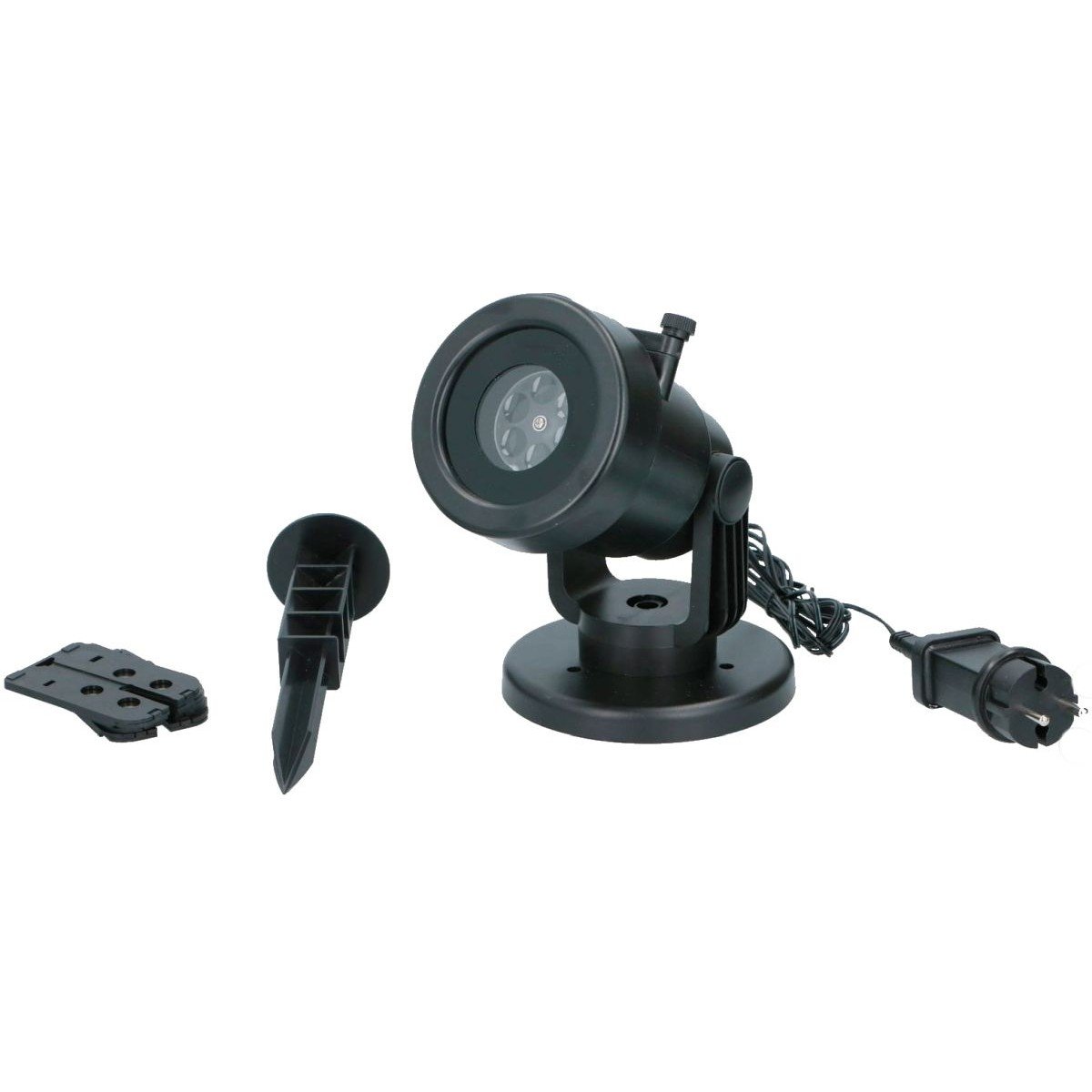 Dołączony do projektora grot, ułatwi umieszczenie go w ziemi w stabilnej stojącej pozycji, a szeroki stojak z otworami na śruby pozwoli postawić go na płaskim podłożu lub przytwierdzić do ściany.