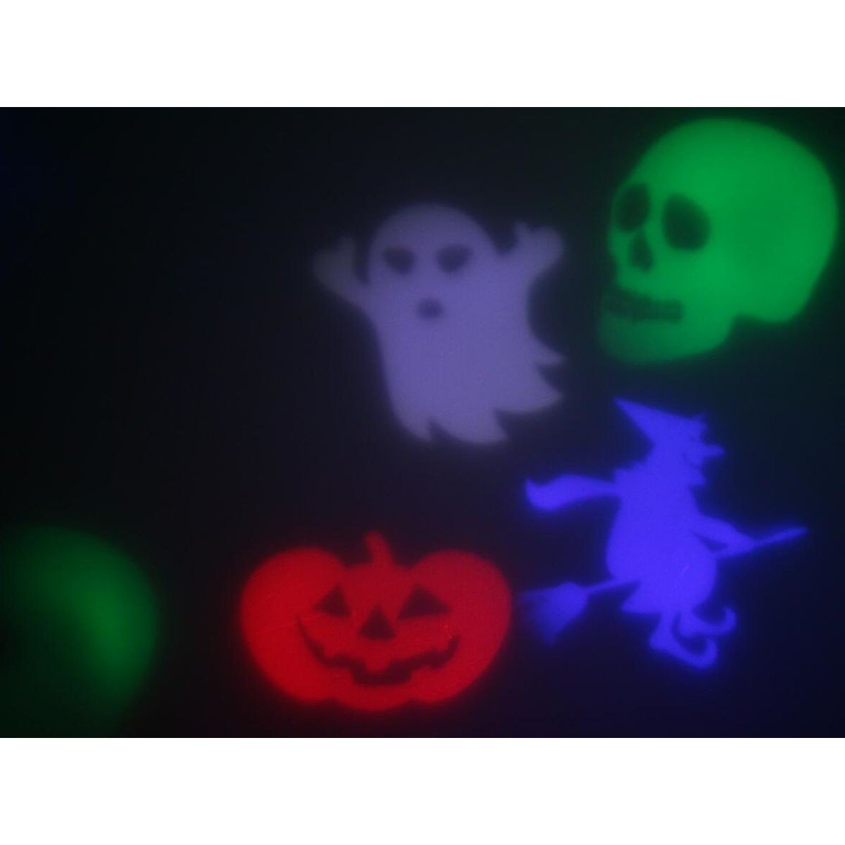 Projektor posiada w zestawie 6 slajdów do zmiany wyświetlanych obrazów: 2 x halloween, 3 x święta 1 x białe gwiazdki. W każdym ze slajdów wyświetlają się cztery wzory.