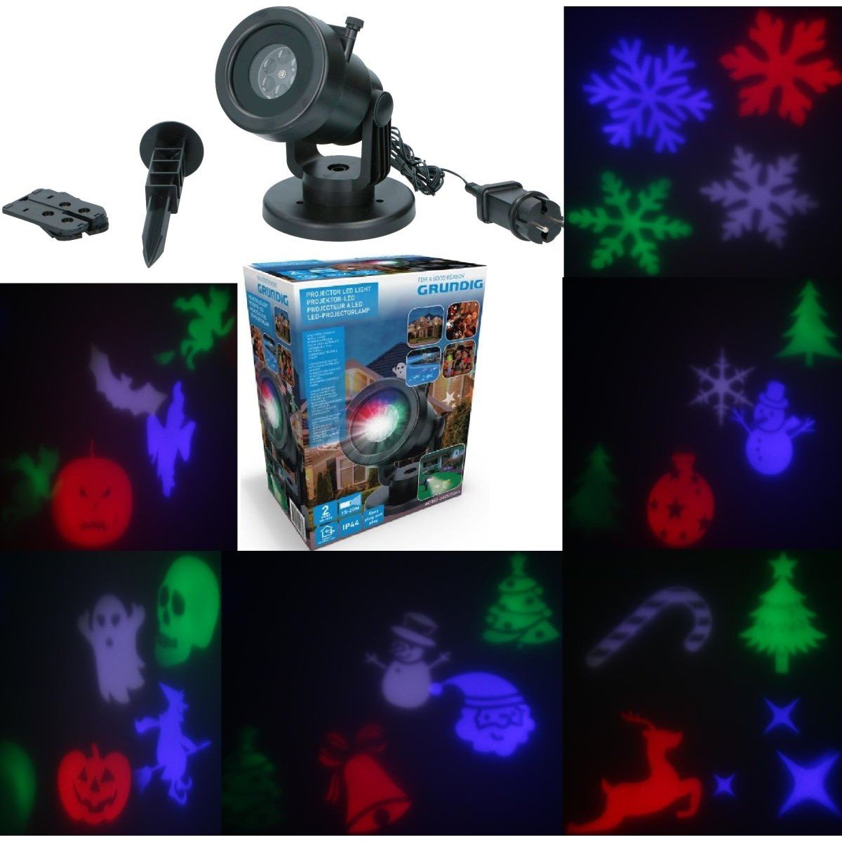 Lubisz ciekawe gadżety? PROJEKTOR LED 6 SLAJDÓW Z 4 WZORY GRUNDIG wprowadzi do Twojego domu i na zewnątrz klimat Halloween lub Świąt Bożego Narodzenia!posiada aż 6 slajdów z 4 wyświetlanymi ...