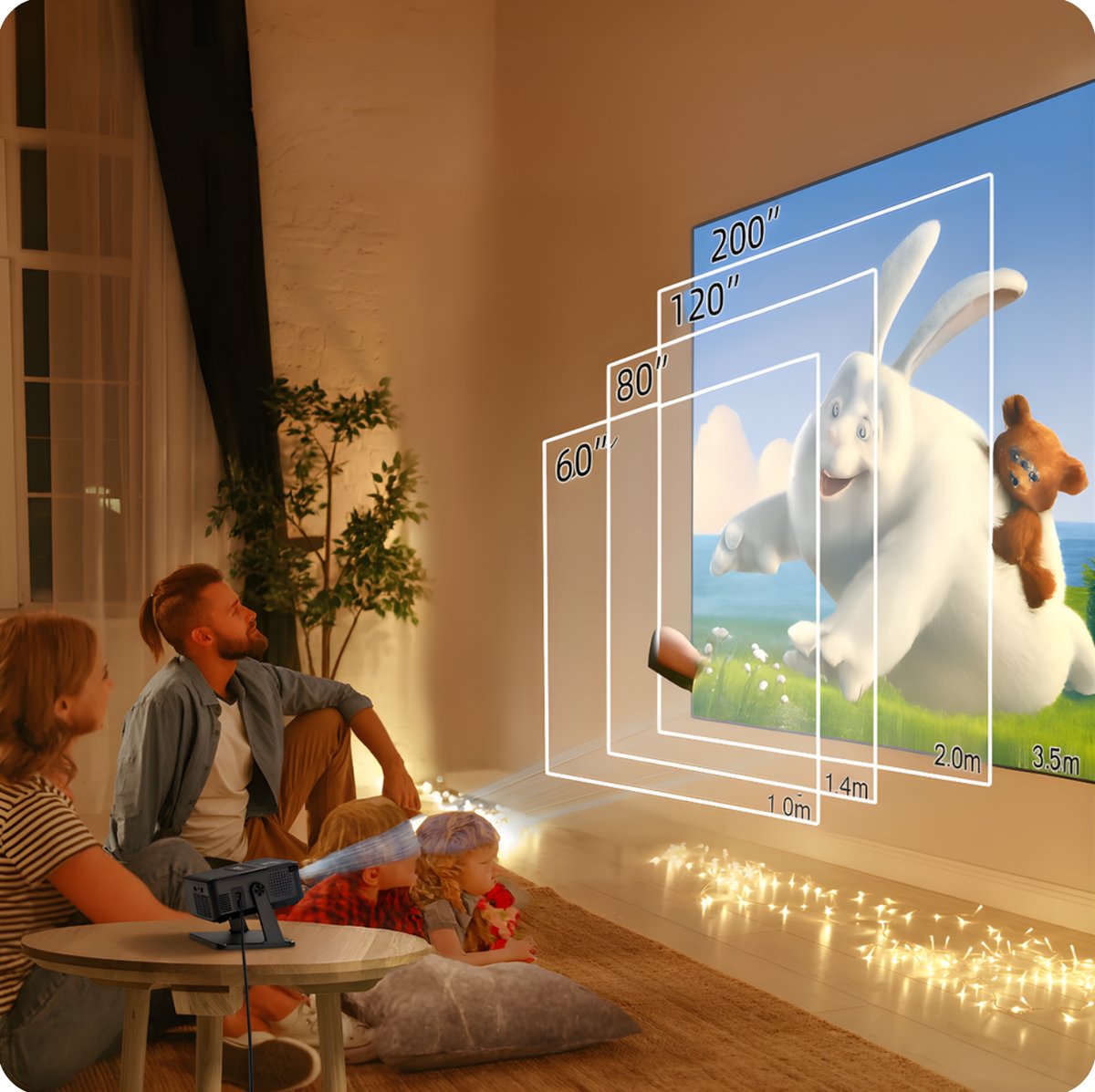 Dostosuj wielkość ekranu do swoich potrzeb – od kompaktowego wyświetlania w małym pokoju po ogromny obraz niczym w kinie.