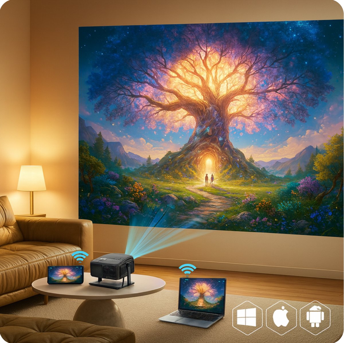 Dzięki technologii LCD + LED oraz systemowi Android TV 11, projektor ten przekształci każde pomieszczenie w prawdziwe kino domowe.