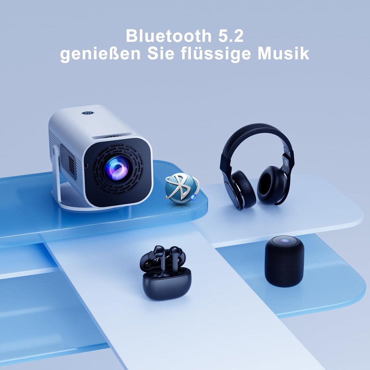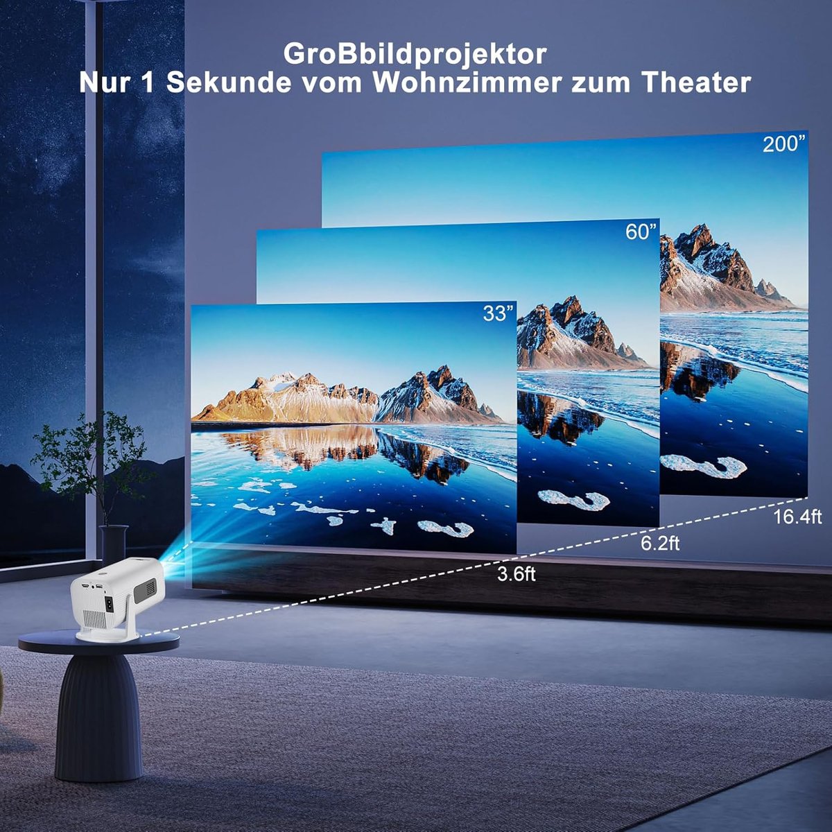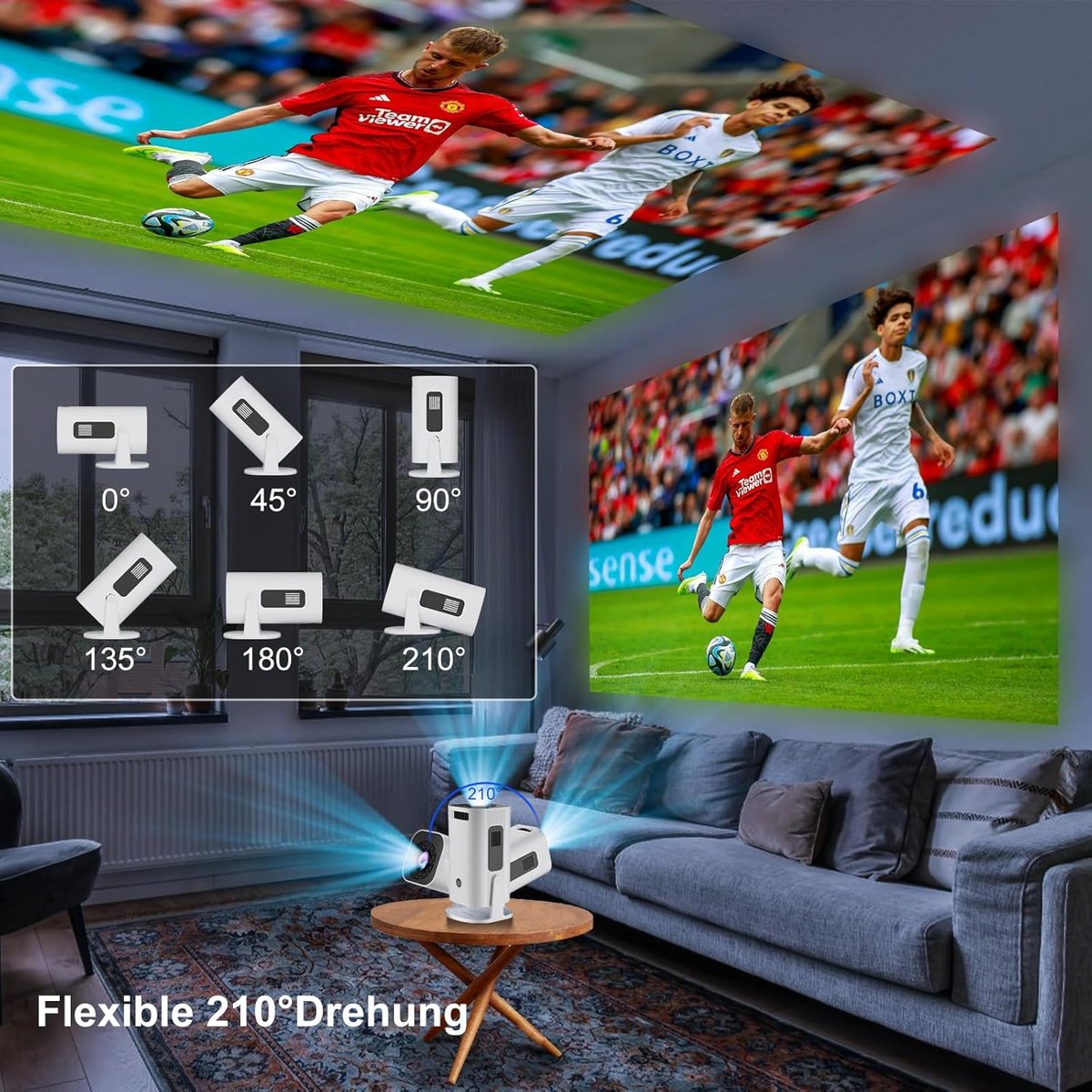 - Obrót o 210° i kompaktowa przenośność: dzięki solidnemu automatycznemu stojakowi możesz łatwo dostosować kąt, aby uzyskać idealne wrażenia wizualne i łatwo uzyskać projekcję w przyczepie kempingowej i projekcję na kempingu na zewnątrz. Można go przechowywać w torbie i zabierać ze sobą, a filmy można wyświetlać na suficie i cieszyć się wysokiej jakości odtwarzaniem.