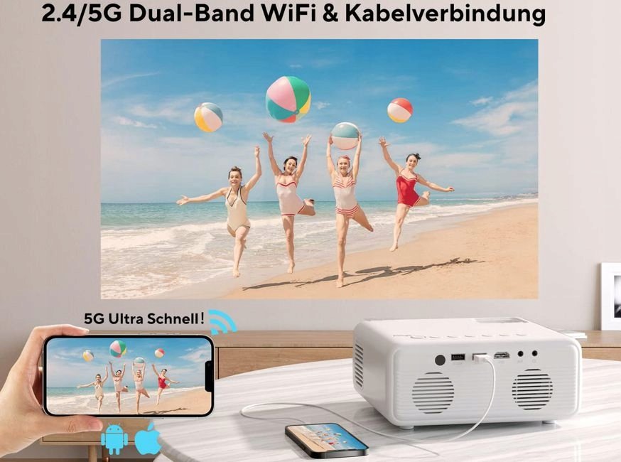 Projektor WiFi 1080p 5GHz do domu i na zewnątrzi: