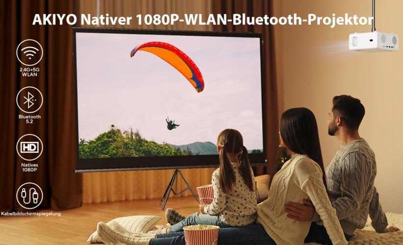 Właśnie zrecenzowałem Projektor Rzutnik AKIYO 07 Full HD Bluetooth 5.2 WiFi + STATYW 9000 Lumenów