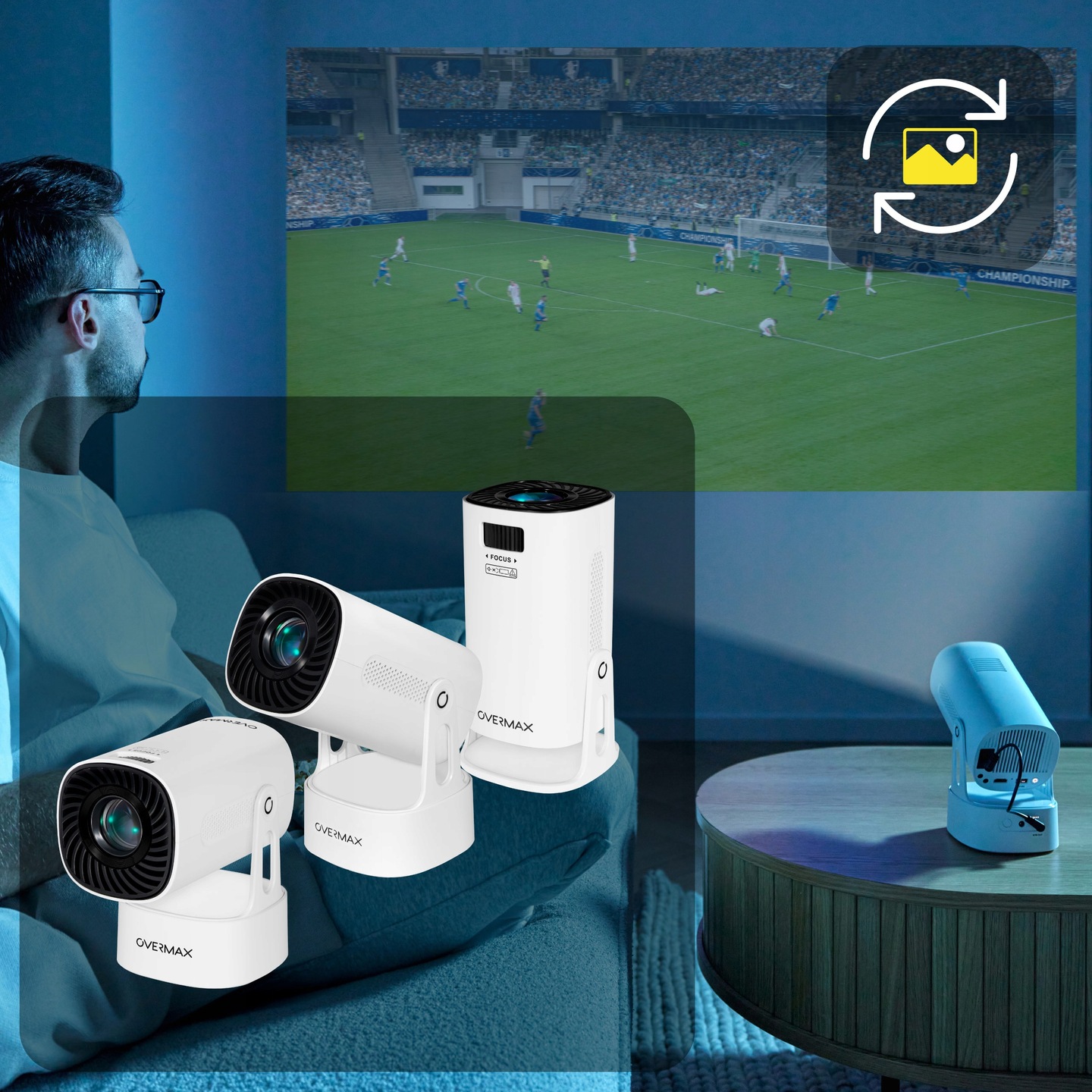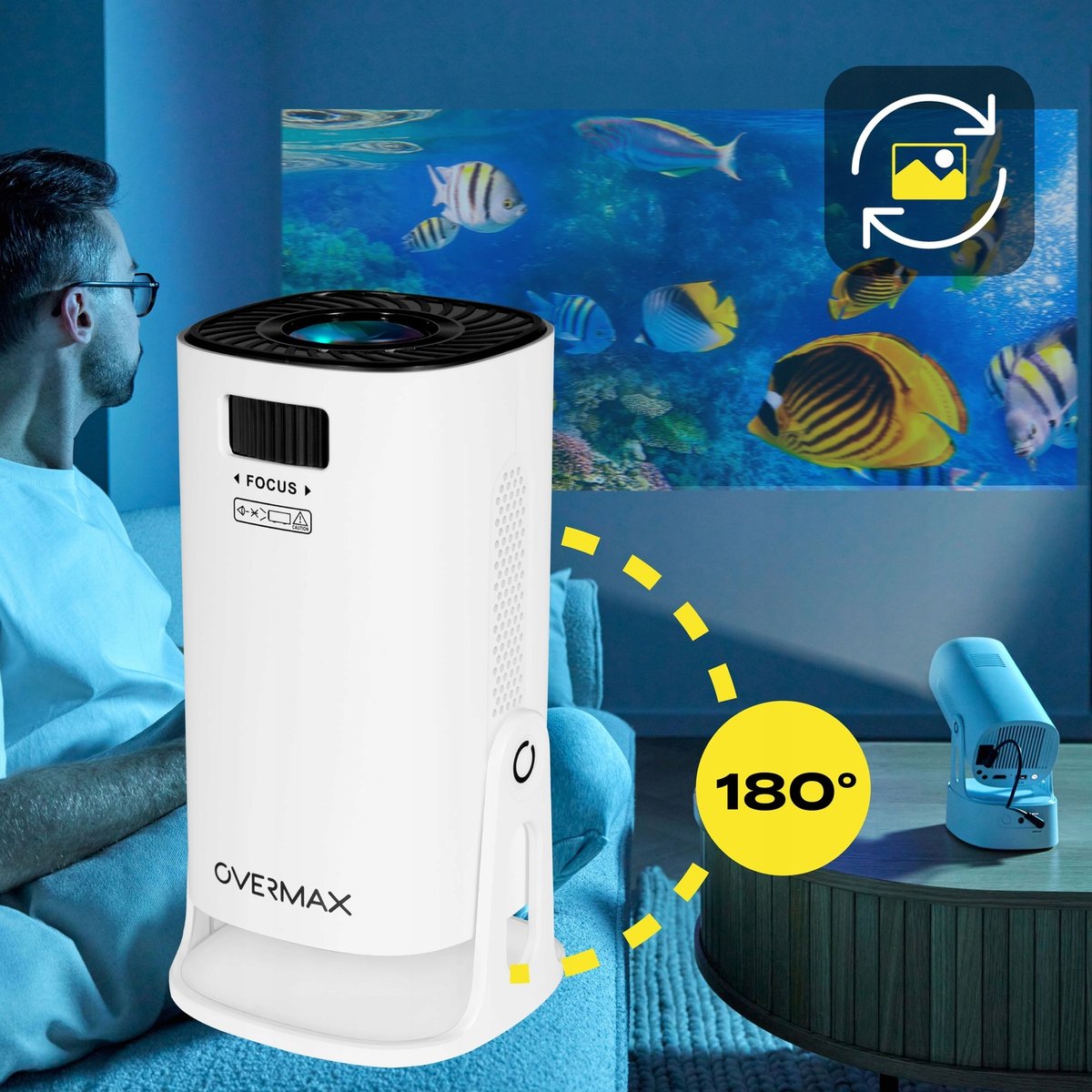 Zapomnij o kompromisach, teraz to Ty decydujesz, gdzie i jak wyświetlasz obraz. Dzięki regulowanemu kątowi w podstawie projektora możesz z łatwością dostosować położenie ekranu, tworząc idealne warunki do oglądania. Chcesz zamienić sufit w prywatne kino? A może wolisz klasyczną projekcję na ścianie? Ruchoma podstawa sprawia, że idealny kąt ustawisz w sekundę, bez wysiłku i bez dodatkowego sprzętu. Niezależnie od tego, czy relaksujesz się w łóżku, organizujesz wieczór filmowy, czy prowadzisz prezentację, obraz zawsze będzie doskonały.