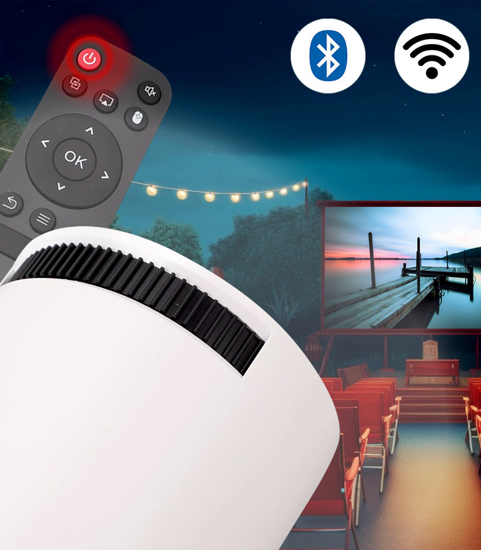 - Wbudowane WiFi 2.4/5 GHz ze wsparciem Miracast oraz Airplay - oglądaj filmy ze swojego smartfona, tableta lub komputera bez konieczności łączenia projektora kablami bezprzewodowo. Działa zarówno z Apple IOS, Android jak i Windows. Wsparcie dla WiFi 5 GHZ znacząco wzmacnia jakość i stabilność sygnału.