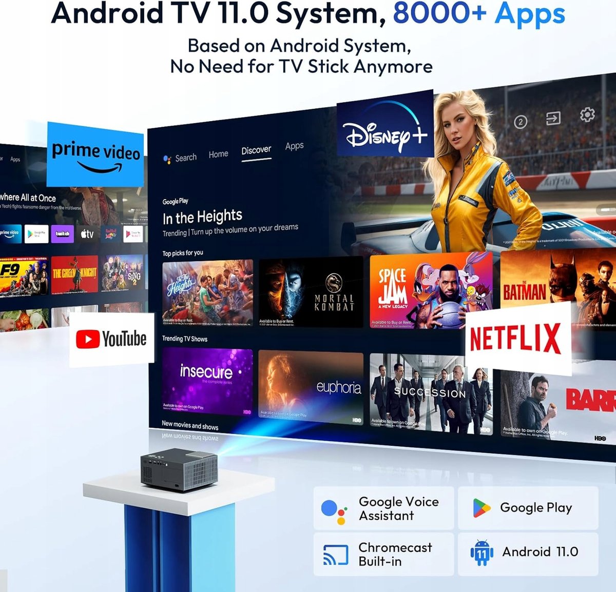 Ciesz się ulubionymi aplikacjami bez dodatkowych urządzeń! Wbudowany system Android TV 11 zapewnia dostęp do Netflix, Disney+, YouTube, Prime Video i wielu innych. Dzięki zintegrowanemu Google Play Store możesz zainstalować dodatkowe aplikacje i stworzyć swoje idealne centrum rozrywki.