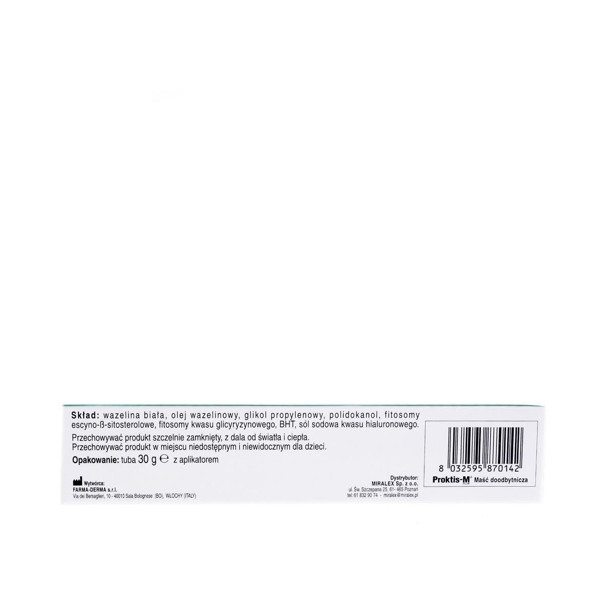 Proktis - M to maść doodbytnicza z aplikatorem, która wspomaga proces regeneracji błony śluzowej kanału odbytu i odbytnicy. Przeznaczenie: doodbytnicze Zawiera: kwas hialuronowy - naturalna