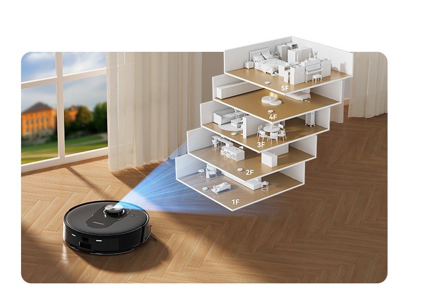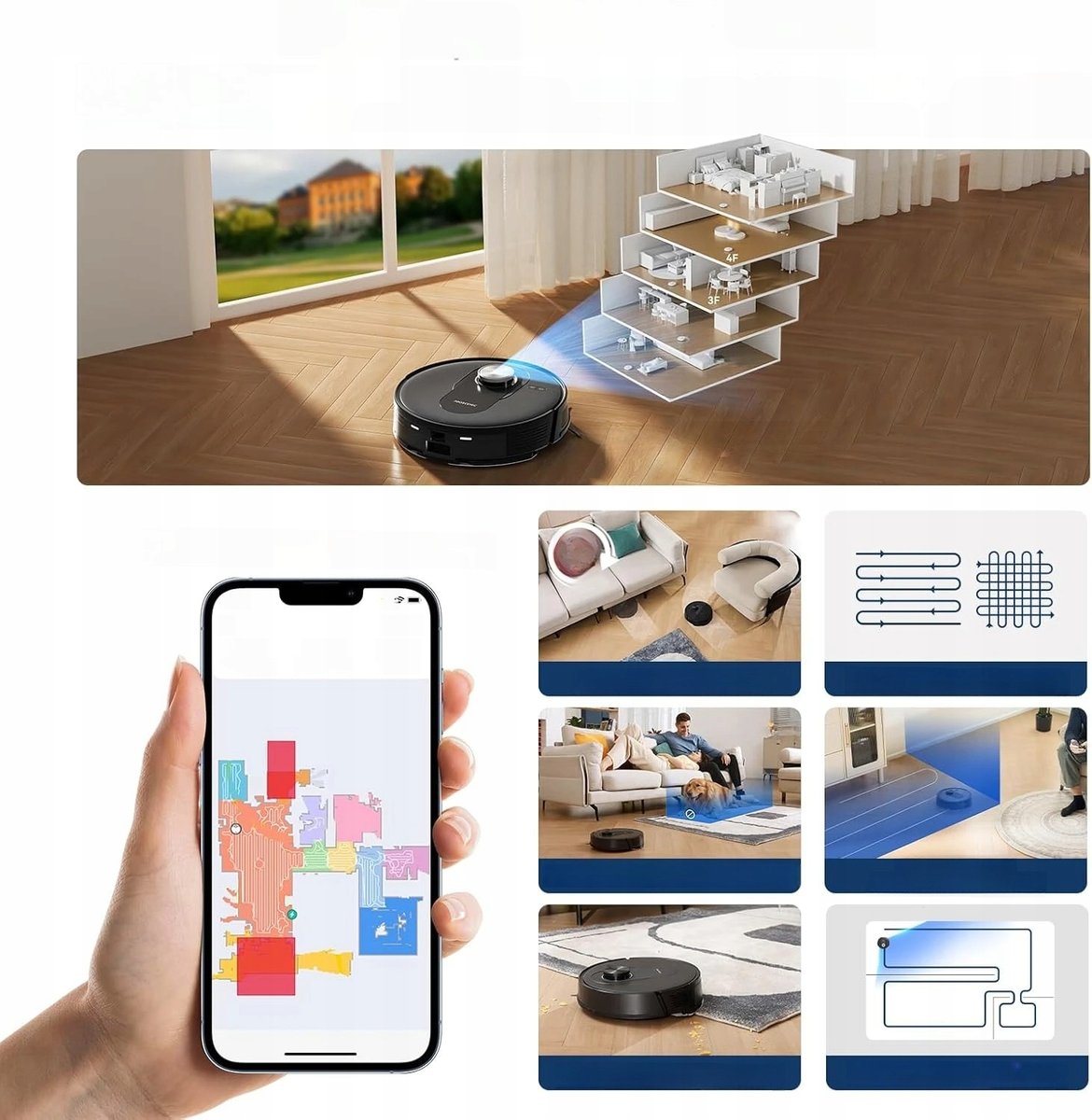 - 【Inteligentna nawigacja i unikanie przeszkód】 Dzięki nawigacji LiDAR 360° Twój dom wykonuje mapę w ciągu 15 minut, aby lepiej uniknąć przeszkód. Twórz karty na maksymalnie 5 poziomów i ustaw ustawienia czyszczenia każdego pomieszczenia.