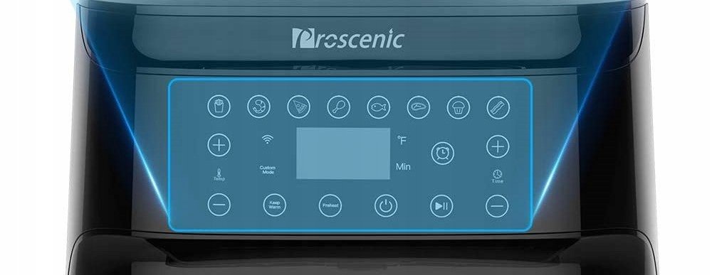 Pobierz aplikację ProscenicHome z App Store (iOS w Apple Store, Android w Google Play). Frytkownicę na gorące powietrze można uruchamiać, zatrzymać lub ustawić z dowolnego miejsca na świecie i w każdej chwili za pomocą aplikacji. Należy jednak pamiętać, że aplikacja obsługuje tylko sieć Wi-Fi 2,4 GHz