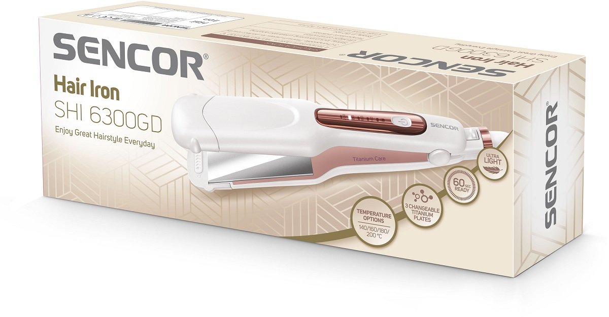 Prostownica służy zgodnie ze swoją nazwą, przede wszystkim do prostowania włosów. Jednak za jej pomocą można uzyskać również fale i loki. Aby cieszyć się efektem wyprostowanych włosów, wystarczy umieścić wysuszone pasmo między rozgrzanymi płytkami i w jednostajnym tempie przesuwać urządzenie, aż do końcówek.SENCOR SHI 6300GD dysponuje mocą na poziomie 50 W i posiada maksymalną temperaturę na poziomie.200 stopni Celsjusza.