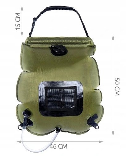 Dobrze pochłania światło, dzięki czemu woda nagrzewa się bardzo szybko. Tworzywo jest nieprzemakalne, a szczelny korek sprawia, że prysznic możesz bezpiecznie przechowywać. Dodatkowo korek znajduje się na paseczku, więc nie ma ryzyka, że się zgubi. Tylna ściana została wykonana z przeźroczystego tworzywa, które pozwala kontrolować stan oraz czystość wody.