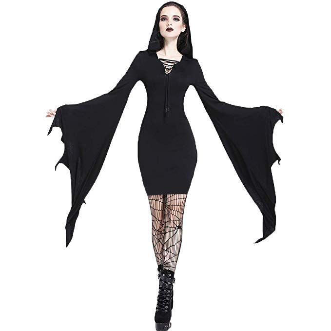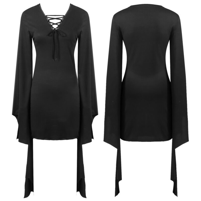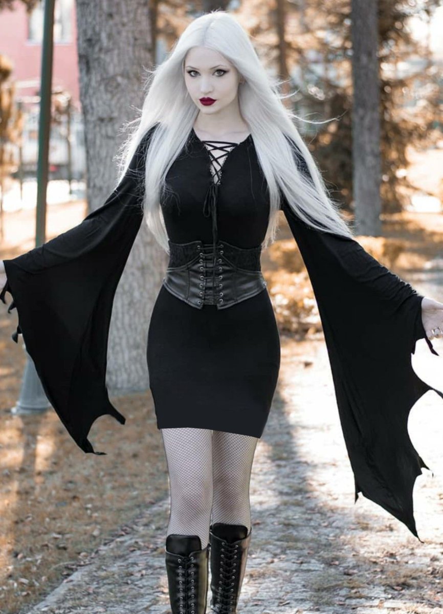Nasza krótka sukienka inspirowana skrzydłami nietoperza, strojem czarownicy oraz kultowym stylem Morticii, to idealny wybór na tematyczne imprezy, festiwale i przebrania Halloween.