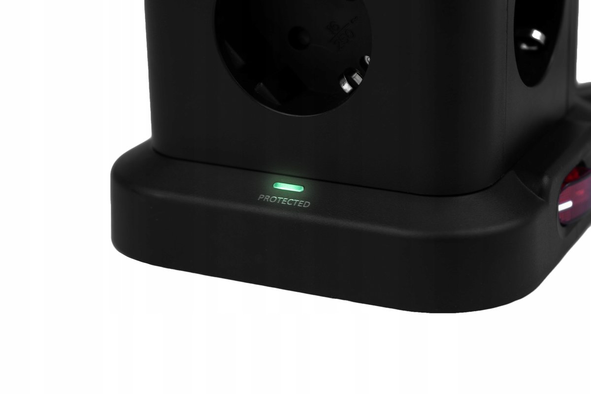 Przedłużacz wyposażony jest w automatyczny bezpiecznik przeciążeniowy znajdujący się obok przewodu zasilającego.