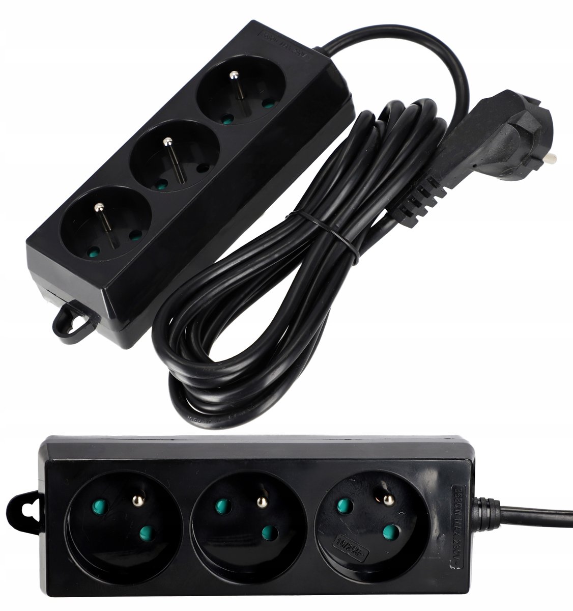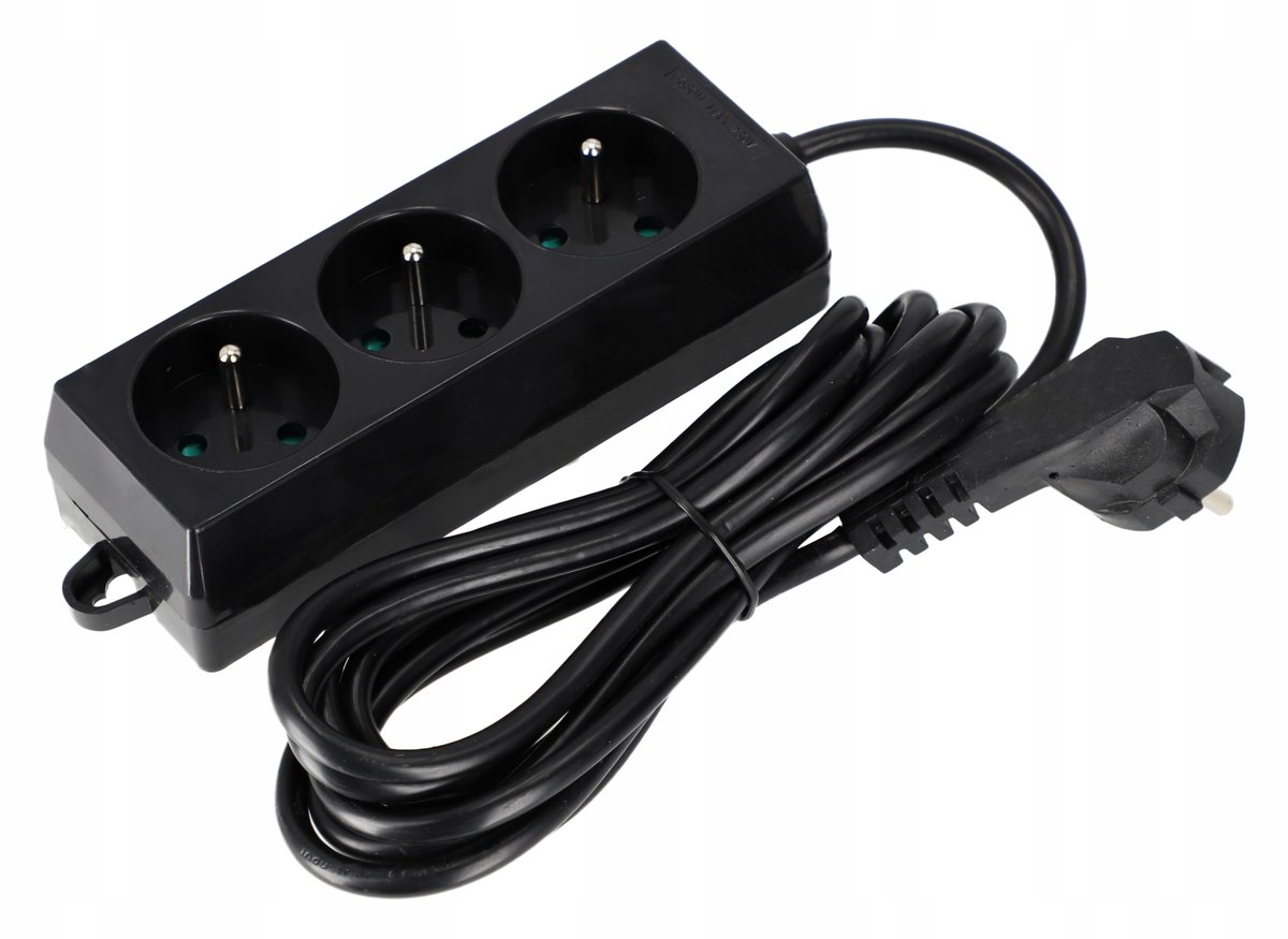 ⭕ Trzy metrowy przedłużacz sieciowy w bardzo modnym czarnym kolorze.