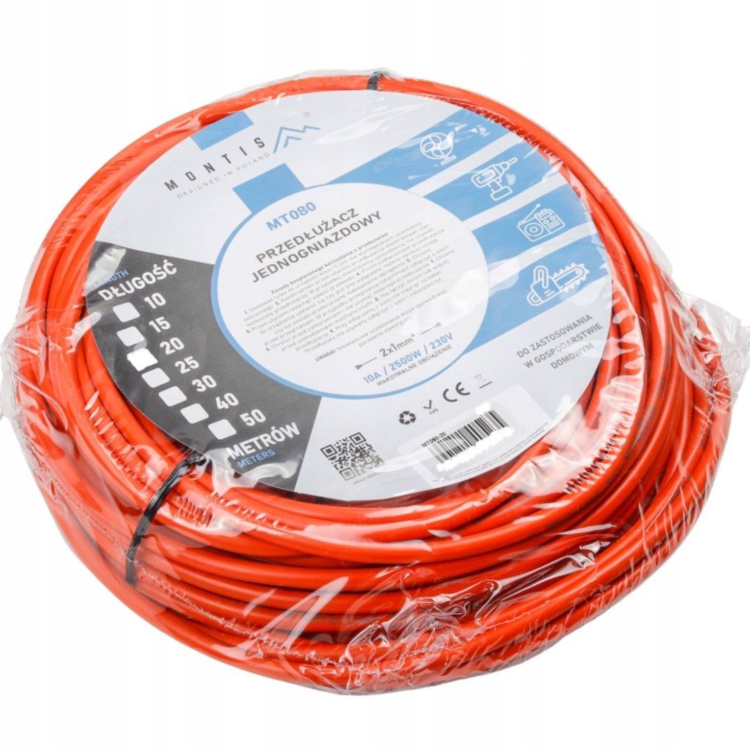 Przedłużacz jednogniazdowy służy do podłączenia przydomowych urządzeń elektrycznych, takich jak kosiarka elektryczna, odkurzacz samochodowy i wiele innych.